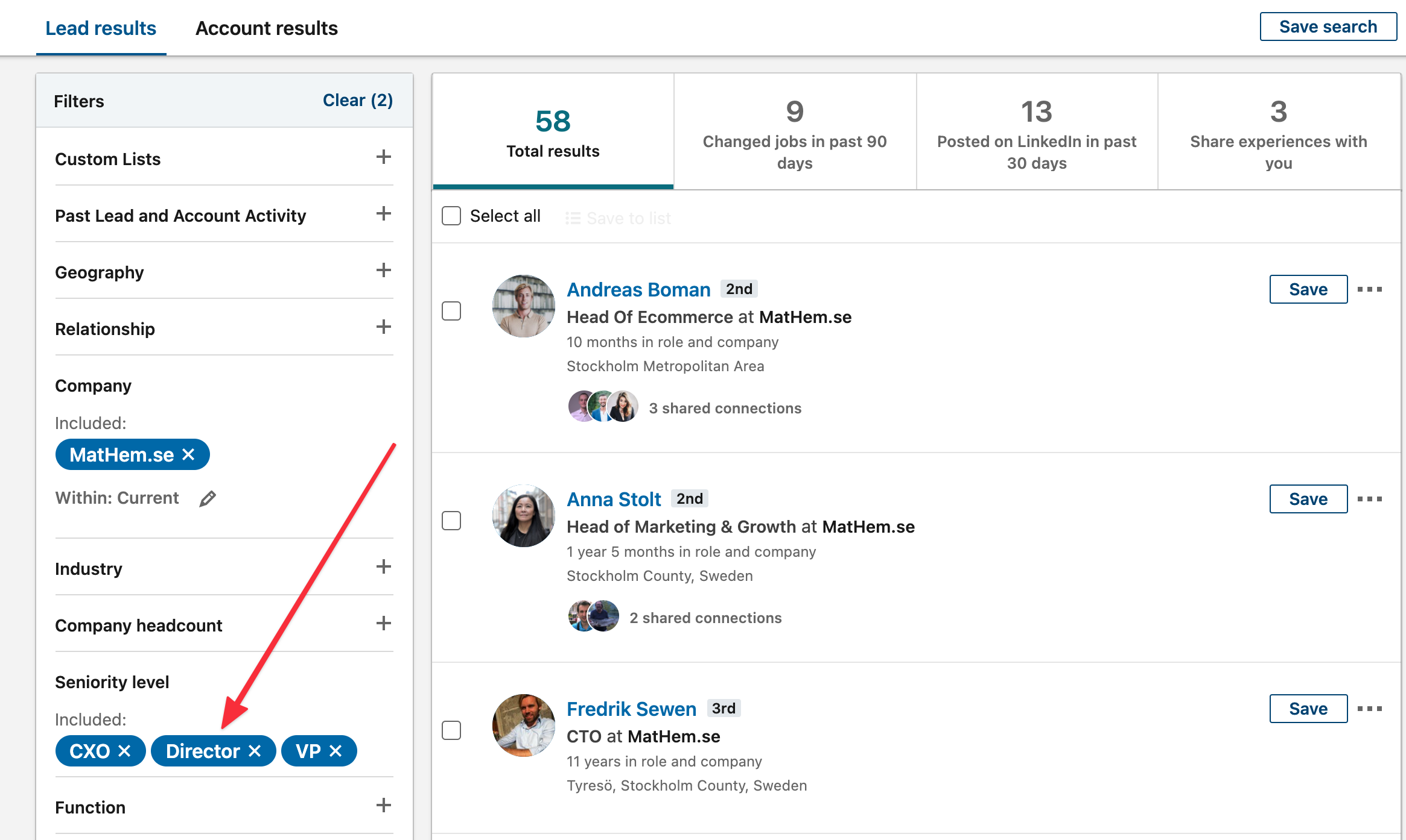 Now you have 58 people in leadership positions. Not all of them will be equally relevant at this point, but I would cold email each and everyone of them: you want to build a relationship with these individuals beyond the sole purpose of selling your services, and even if they are not interested in using Skillhus at the moment, maybe they will be, one day - or maybe they will be in their next company (or maybe they know someone who is interested now: you never know).