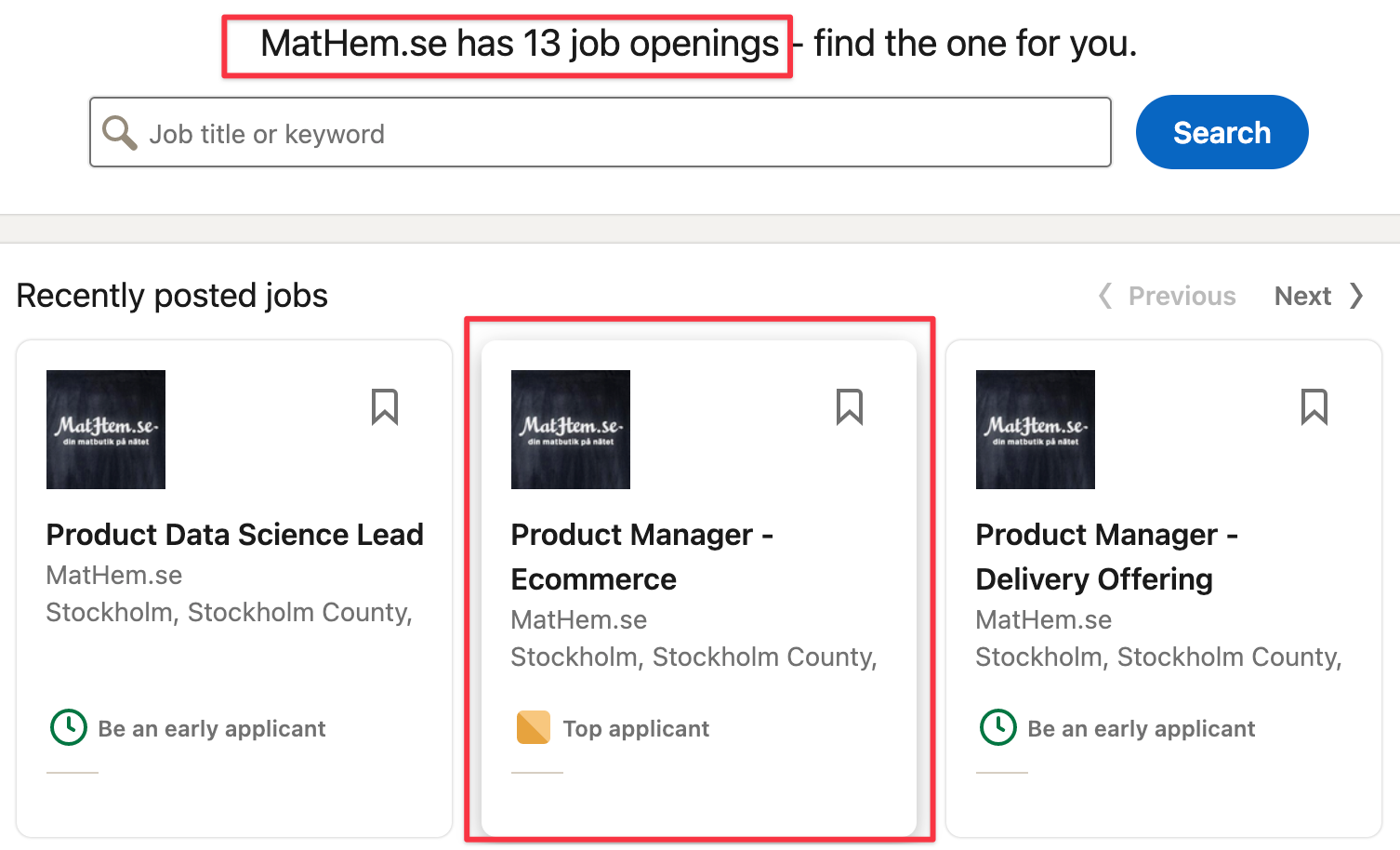 Let's focus on the Product Manager position. The job ad explains that this position reports to the Head of eCommerce. A quick research on Sales Navigator tells you this guy is the person you're looking for: