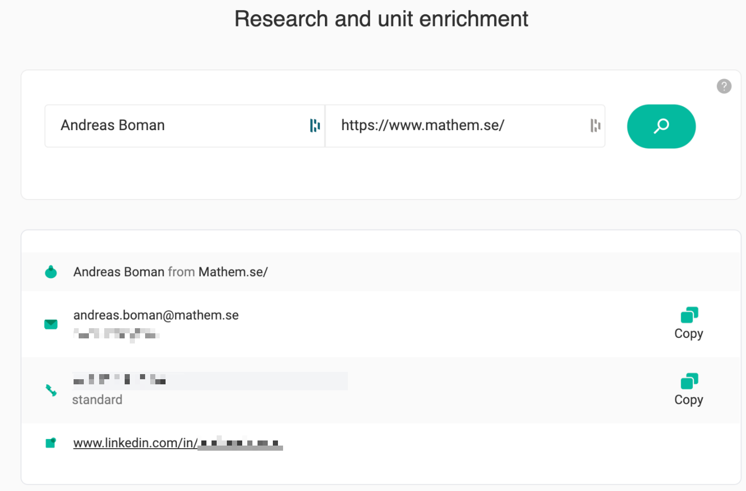 If you don't have shared connections, you can still find Andreas' email address using tools like Hunter.io or Dropcontact (GDPR-compliant). You'll find this: